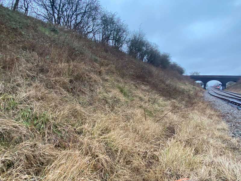 On Tuesday, earlier this week, the Grizzled Skipper Project volunteers braved the wet conditions to continue our efforts to manage the suite of sites that support grizzled skipper in South Nottinghamshire. Our venue on Tuesday, was the cutting directly to the south of Rushcliffe Halt, one of the accessible railway stations on the heritage railway that runs between Ruddington and East Leake. The site is an excellent site for wildlife whilst also offering a great place to experience the counties railway heritage too (but importantly not when the trains are running).