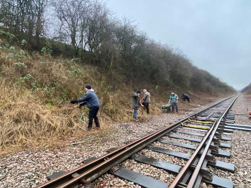 On Tuesday, earlier this week, the Grizzled Skipper Project volunteers braved the wet conditions to continue our efforts to manage the suite of sites that support grizzled skipper in South Nottinghamshire. Our venue on Tuesday, was the cutting directly to the south of Rushcliffe Halt, one of the accessible railway stations on the heritage railway that runs between Ruddington and East Leake. The site is an excellent site for wildlife whilst also offering a great place to experience the counties railway heritage too (but importantly not when the trains are running).